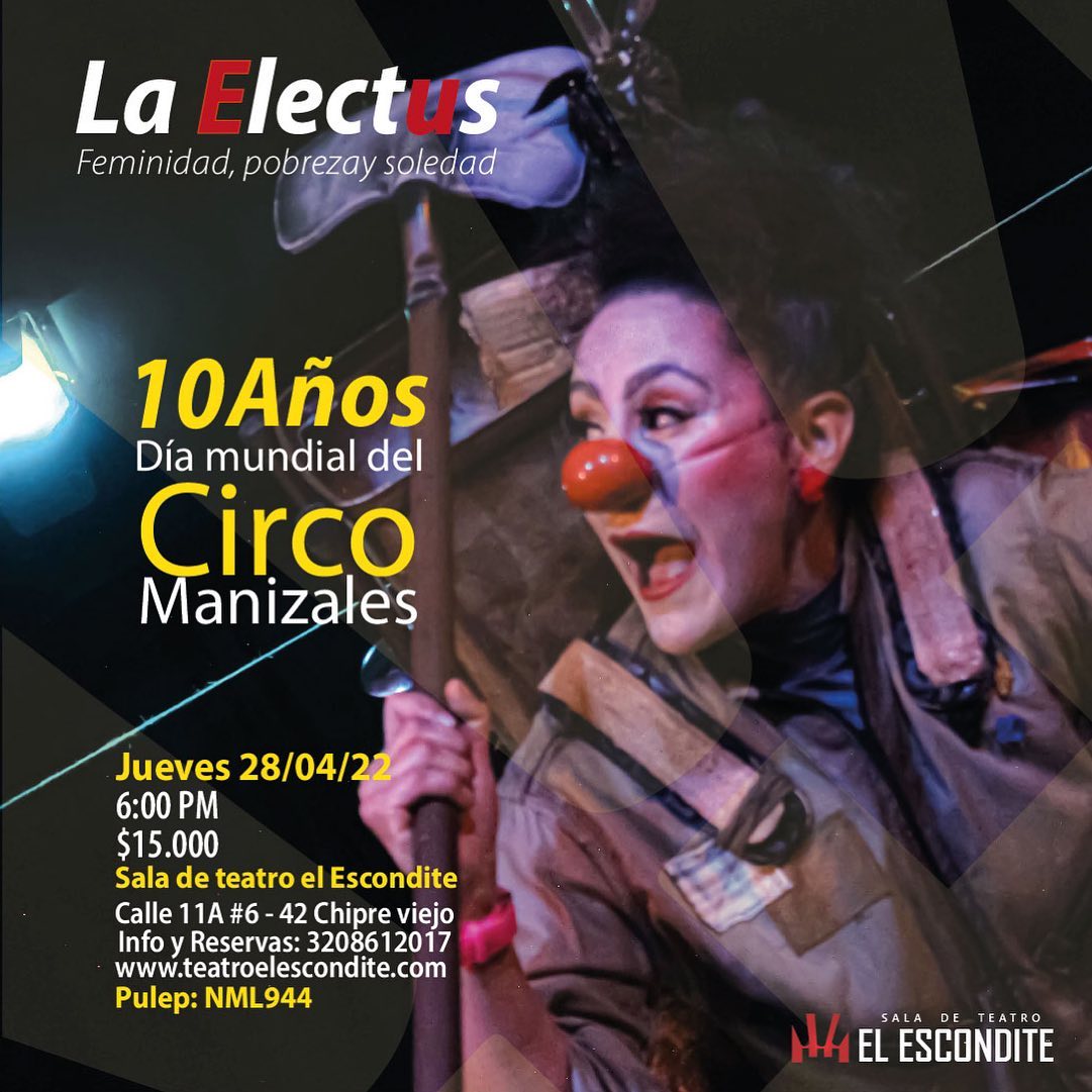 Este jueves 28 de abril a las 6 p.m. en el marco de la celebración del Día Mundial del Circo, desde Bogotá llega la obra LA ELECTUS "Feminidad, pobreza y soledad".