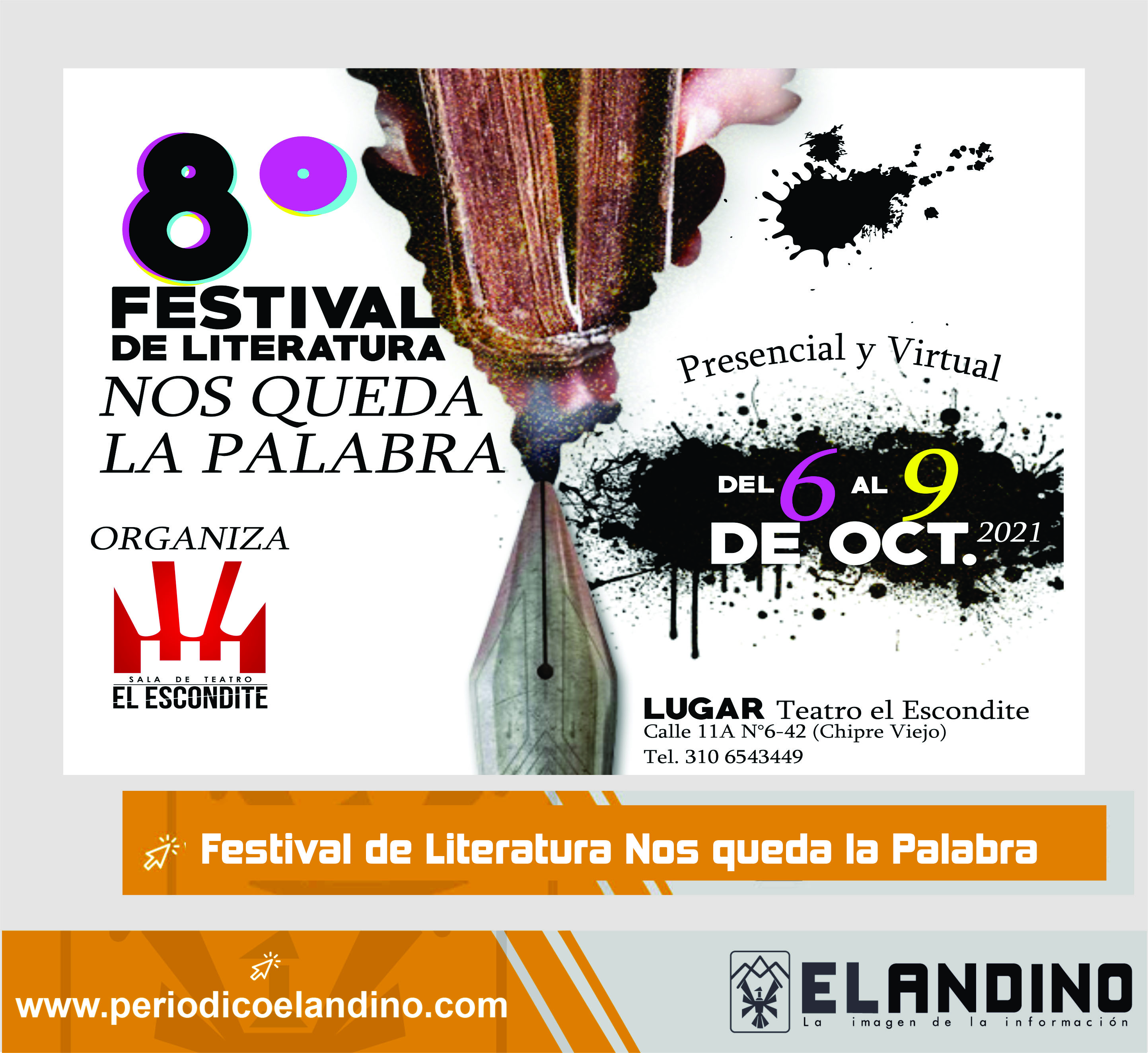 A partir de este miércoles 6 de octubre hasta el sábado 9 de octubre de 6 p.m. a 9 p.m. , se realizará el 8° FESTIVAL DE LITERATURA: NOS QUEDA LA PALABRA, un evento que tendrá un homenaje a La Poeta Marta Vieira.