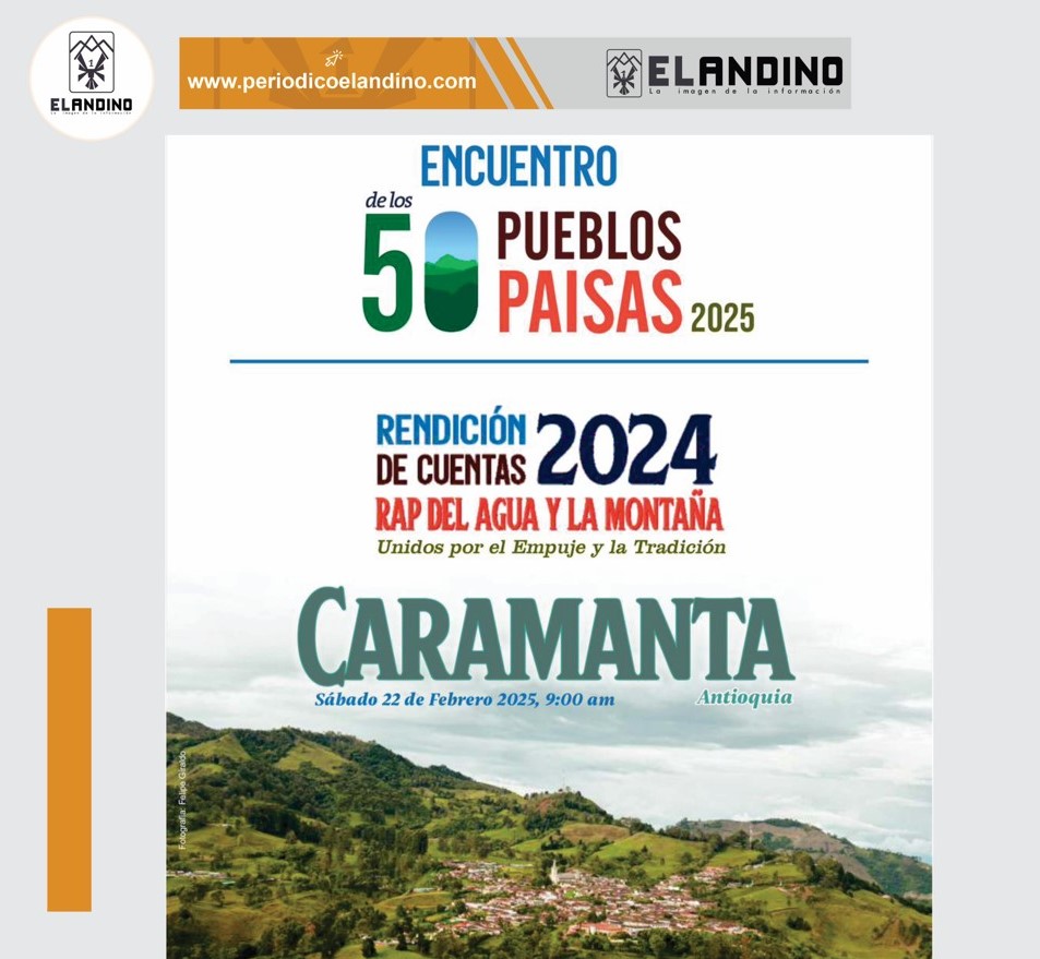 El próximo sábado 22 de febrero, el municipio de Caramanta, ubicado en el suroeste antioqueño, será el epicentro del encuentro de los 50 Pueblos Paisas. Este evento reunirá a los 27 municipios de Caldas y los 23 municipios del suroeste antioqueño, en un espacio de diálogo y cooperación regional.