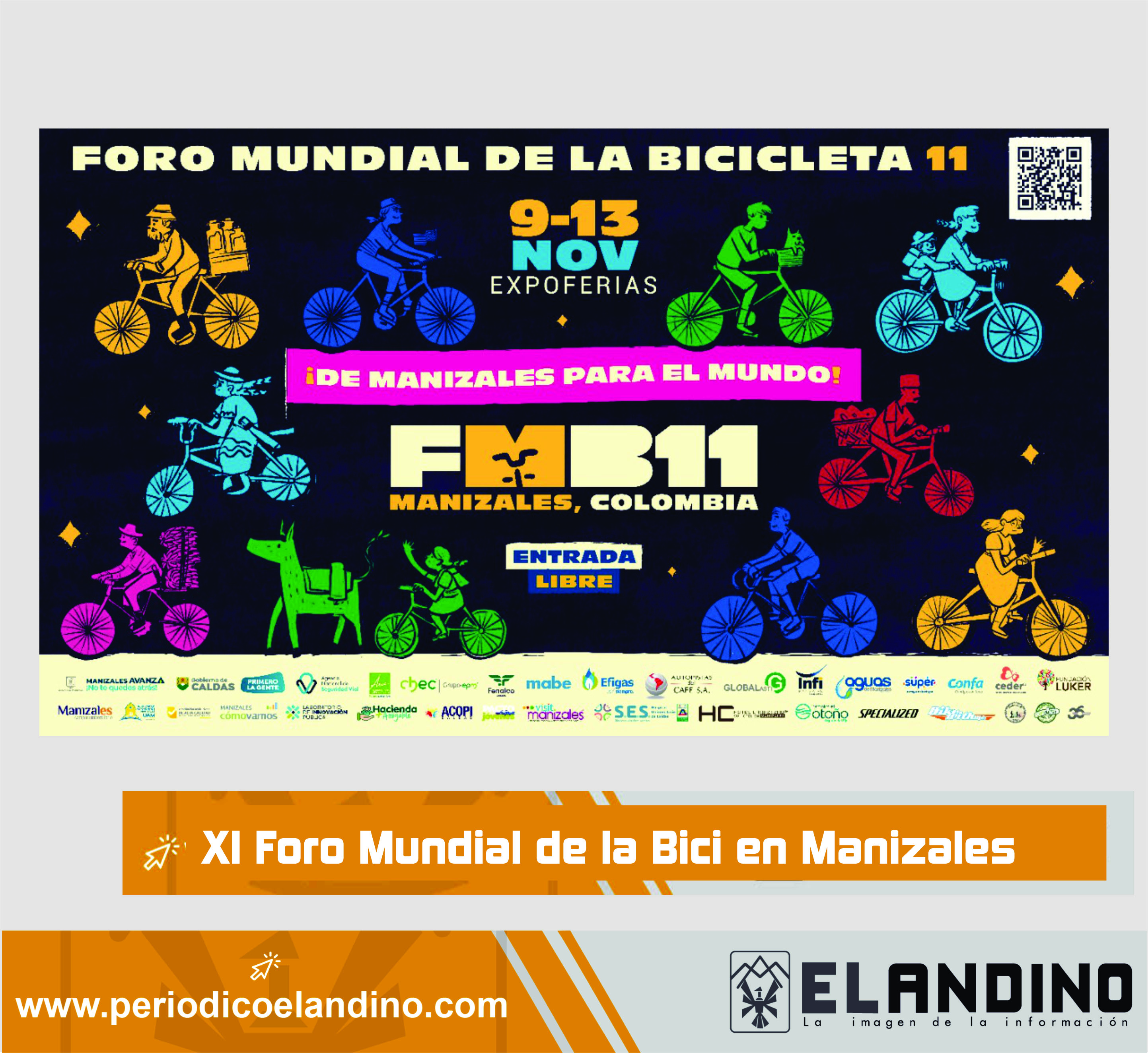 Desde el pasado miércoles 9 hasta el domingo 13 de noviembre, se lleva cabo en esta capital el XI Foro Mundial de la Bicicleta, mediante el cual se reunirán en Manizales cerca de 3.500 ciclistas de Colombia y el exterior. Este evento nació en Brasil en 2011, luego que un conductor arrollara un grupo de ciclistas durante una parada ciclística, cómo un espacio ciudadano, donde se promueve la ciclo-movilidad como herramienta de cambio social.