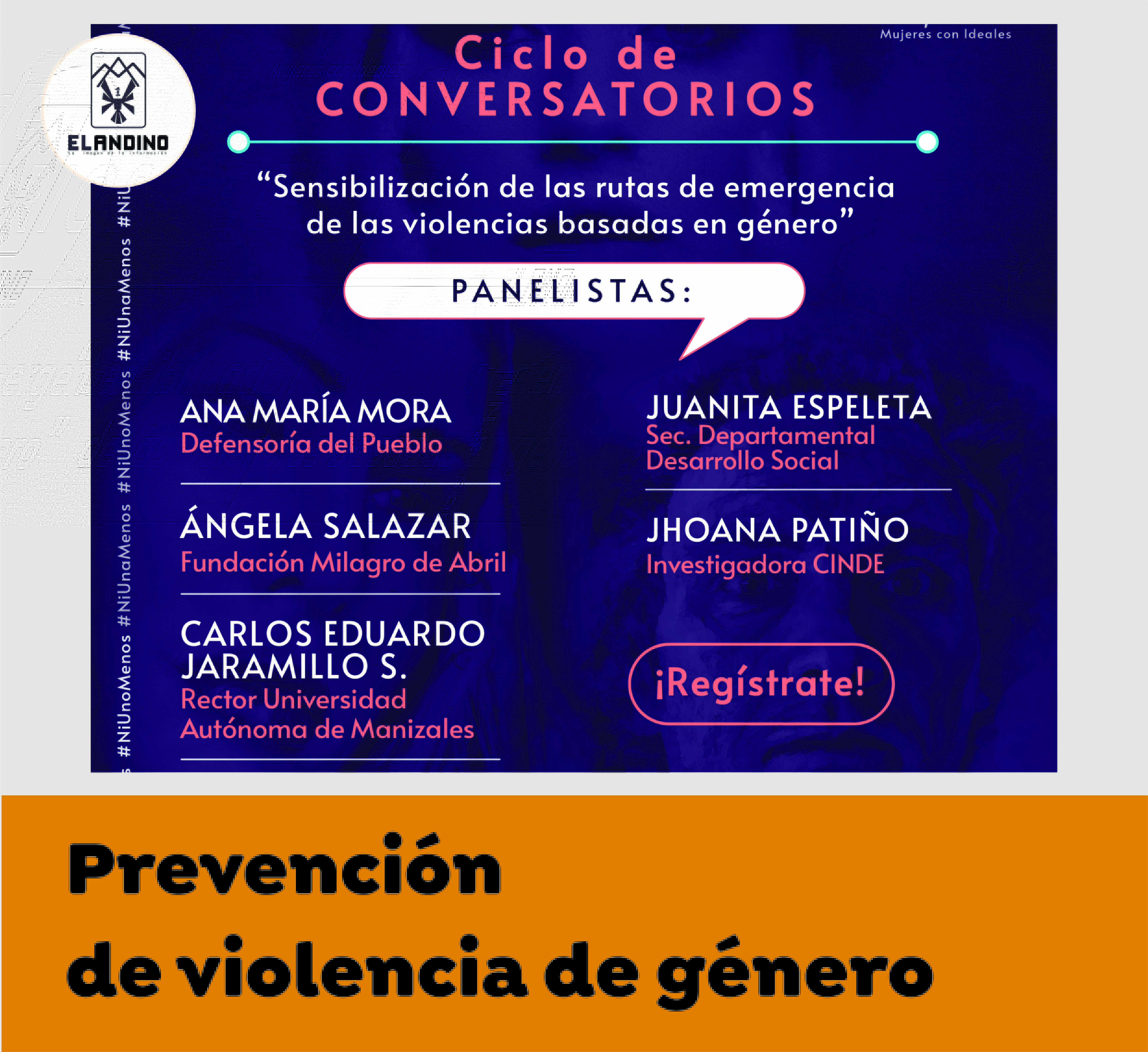 La Fundación Mujeres con Ideales y Cámara de Comercio de Manizales invito hoy jueves 29 de junio a las 4:30 p.m. con entrada libre en el Auditorio Carlos E. Pinzón (Cámara de Comercio de Manizales) al ciclo de conversatorios "Sensibilización de las rutas de emergencia de las violencias basadas en género".
