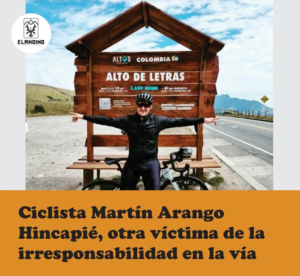 El ciclista aficionado Martín Arango Hincapié se convirtió en la enésima víctima fatal del irracionalismo de un conductor en una carretera nacional, la Panamericana, que cruza por Manizales, cerca al aeropuerto La Nubia.